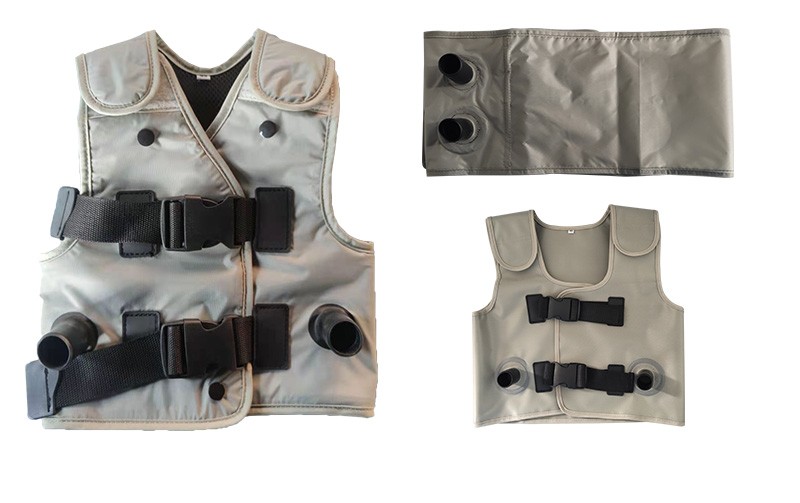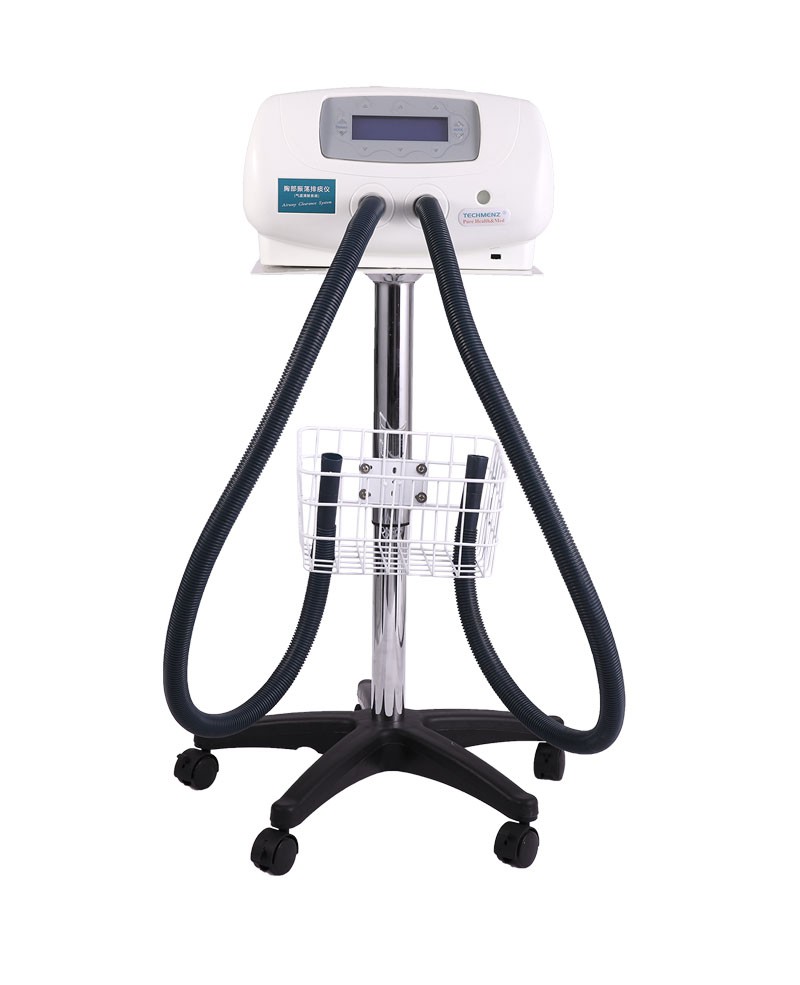 背心式排痰機(jī)作用原理: 通過模擬正常生理咳嗽的原理,將患者所穿專用充氣背心用導(dǎo)氣軟管連接到高速脈沖泵上,并快速地充氣和放氣,使患者胸壁發(fā)生有規(guī)律的舒張運(yùn)動,患者氣道和肺部發(fā)生自主的震顫氣流和定向引流力,促使呼吸道粘液及各個肺葉深部代謝物松弛,液化、脫落;并在定向引流力的作用下將已液化脫落的代謝物按照選擇的方向(如細(xì)支氣管→支氣管→氣管)排出體外。