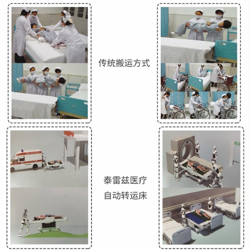 (1)無需人工,實現(xiàn)自主轉(zhuǎn)移患者在不同科室床體之間全自動和半自動的轉(zhuǎn)運。