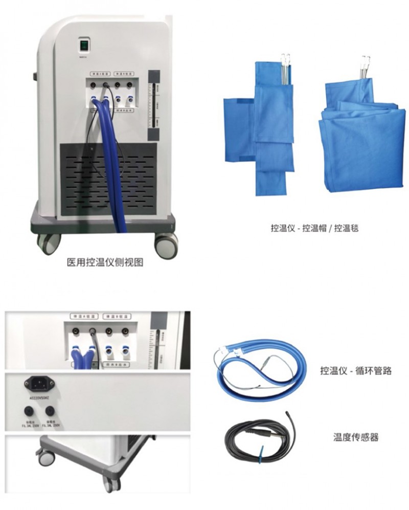 工作原理:醫(yī)用控溫儀是利用制冷、制熱原理,在主機供水口與回水口處,接上內(nèi)有循環(huán)管路的毯子,系統(tǒng)通過半導(dǎo)體、風(fēng)扇、水泵進行實時控制,實現(xiàn)毯子的循環(huán)水制冷/制熱的溫度控制,循環(huán)水與患者發(fā)生熱量交換,達到控制體溫的目的。